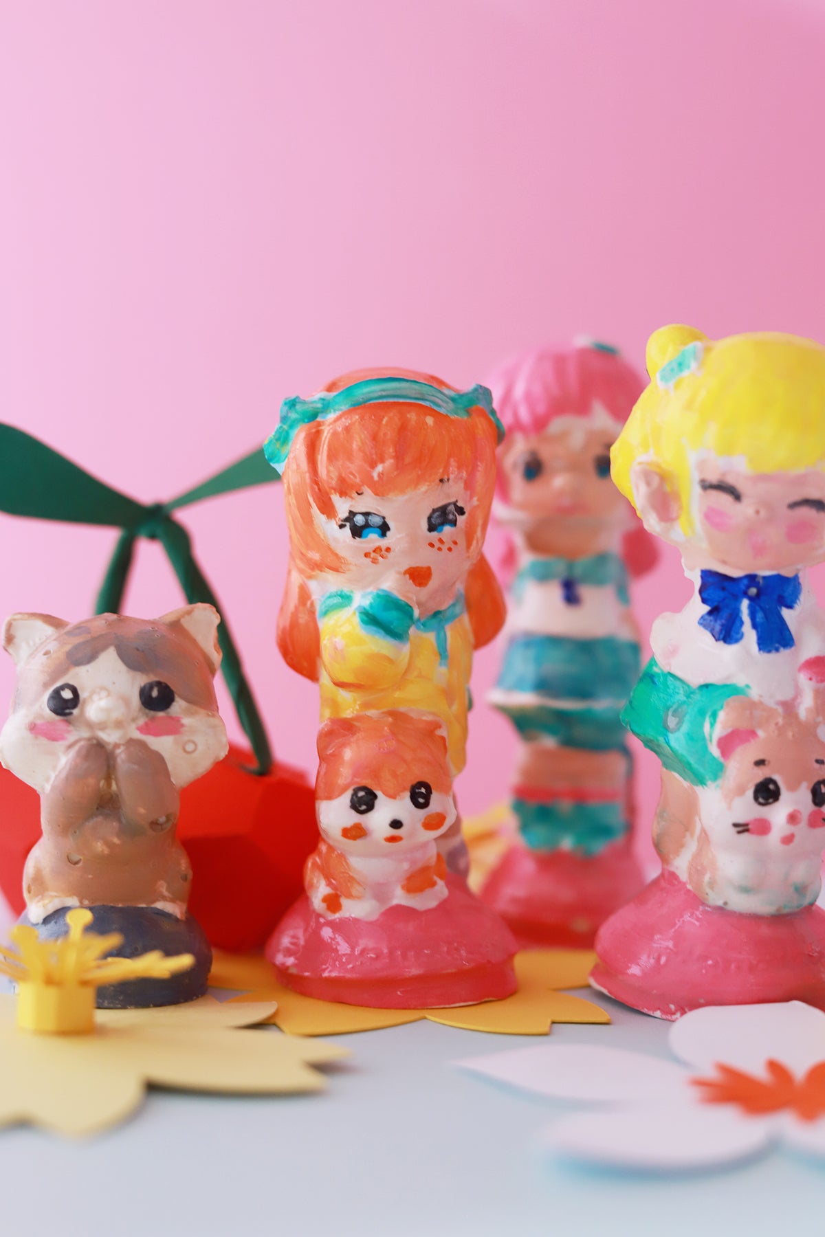 ✓ 3 copines et 2 animaux trop mimi aux couleurs pastel à mouler et à peindre soi-même