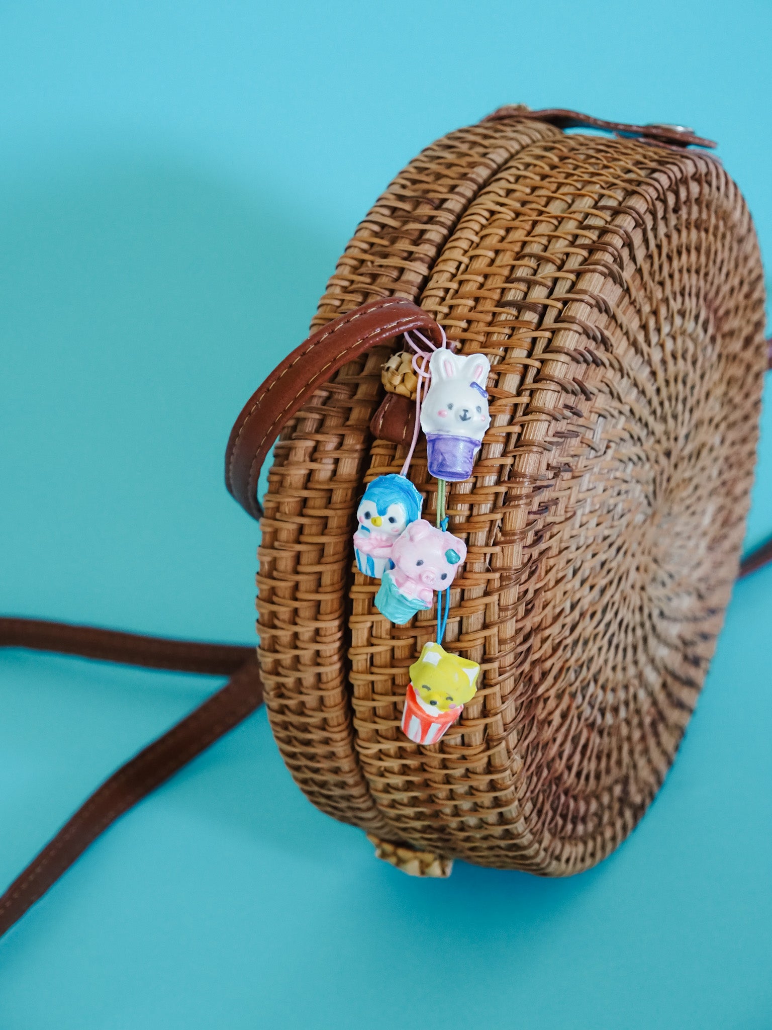 Moule et personnalise tes 9 figurines craquantes (le renard, le chat, le koala, le petit poussin...), fixe les cordons colorés et accroche-les fièrement sur ton sac, tes clés ou même ton téléphone !